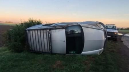 En Av. Industria Nacional a la altura de Parque Comirsa Pymes 2, a metros del frigorífico MARKS, una camioneta Renault Kangoo, al mando de un nicoleño de 27 años, volcó en la curva quedando sobre la banquina.