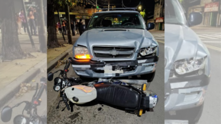 En Viale y Chacabuco, colisionaron una moto Motomel CG 150 y una camioneta Chevrolet S10. Como consecuencia del violento impacto, el motociclista sufrió fractura en su pierna derecha.