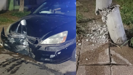 En Av. Falcón y Maipú, un automóvil Ford Focus, conducido por un hombre de 58 años, impactó contra un poste del alumbrado público.