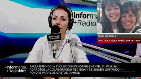 En la mañana de este lunes, Radio Net entrevistó a Maira Espíndola, quien contó la situación actual de su hermana Paola, víctima de un violento ataque por parte de su pareja en Italia.