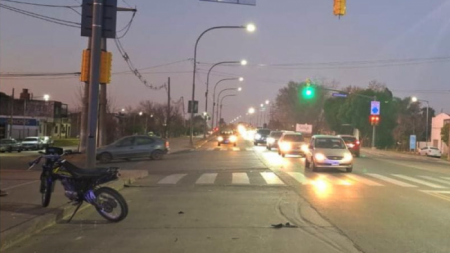 En Ruta 188 y Congreso, colisionaron una motocicleta Yamaha XTZ 125, tripulada por un joven de 19 años y una chica de 21, y un automóvil Toyota Corolla, conducido por una mujer de 53 años.