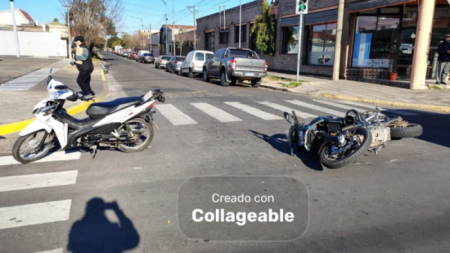 En Av. Savio y Cochabamba colisionaron una motocicleta perteneciente a UTOI San Nicolás, conducida por un efectivo de 27 años, y una motocicleta Honda Wave 110 cc, tripulada por dos hombres de 28 y 41 años.