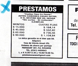 Un grupo no precisado de personas habría sido estafado por Di Tempo S.R.L., que mediante engañosa publicidad los habría captado. La mandataria de otra empresa más importante ofrecía “préstamos”, que en realidad eran “círculos de ahorro previo”. Los que suscribían el contrato se enteraban de la maniobra cuando reclamaban el monto prometido. (Leer nota en Columnistas)