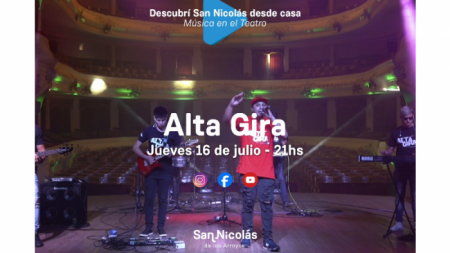 El jueves 16 de julio a las 21 hs. el grupo de cumbia “Alta gira” presentará online las canciones que fueron grabadas en el Teatro Municipal en el marco del ciclo cultural organizado por la Municipalidad de San Nicolás.