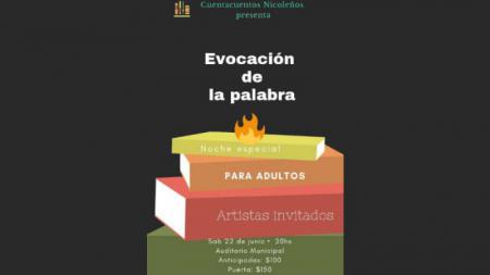Este sábado 22 de junio a las 20.00 hs. en el Auditorio Municipal (ingreso por Maipú 22), los integrantes de “Cuantacuentos Nicoleños” realizarán una velada de cuentos para adultos con la presentación de “Evocación de la palabra".