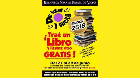 Desde el miércoles 27 al viernes 29 de junio se podrán acercar a la Filial, ubicada en calle América 141, con un libro que ya hayan leído o no usen o quieran canjear y cambiarlo por otro gratis.