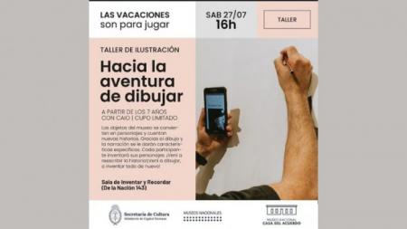 Este 27 de julio a las 16:00 en la Sala de Inventar y Recordar (De La Nación 143), se llevará a cabo un taller de ilustración y el 28 a las 16:00 habrá un espectáculo en el Auditorio del Edificio Anexo (De la Nación 139).