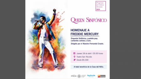 El 18 de abril se realiza en el Teatro el Homenaje a Freddie Mercury, un espectáculo dirigido por el Maestro Fernando Ciraolo y más de 50 artistas en escena. Las entradas son a total beneficio de la Casa del Niño.