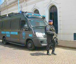 Sierra Pastrana fue trasladado desde la alcaidía de los Tribunales en Buenos Aires al edificio de calle Ameghino, con una importante custodia del Grupo Especial de Operaciones de la Policía Federal, GEOF.