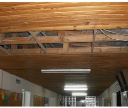 Los docentes afiliados a este gremio expresan que la situación es cada vez más preocupante y remarcaron que “desde el año pasado no tienen cielorraso ya que el Consejo Escolar lo hizo retirar para arreglarlo y esto nunca sucedió”. Los docentes utilizan baldes y tarros en los días de lluvia.