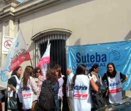 En el marco de la jornada de protesta se repudiaron los hechos ocurridos ayer en la paritaria provincial donde una patota que agredió y golpeó a dirigentes de la FEB.