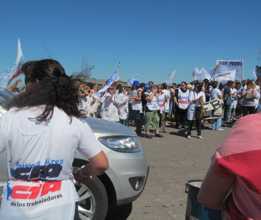 El Frente Gremial Docente integrado por Suteba y Feb de San Nicolás, Ramallo y San Pedro se manifestó al ingreso de la Expoagro. Coincidió con la visita del gobernador Scioli.