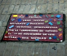 A continuación la Secretaria de Derechos Humanos de la Seccional Bety Moises dio paso con sus palabras al descubrimiento de la baldosa en memoria de la docente desaparecida en 1976.