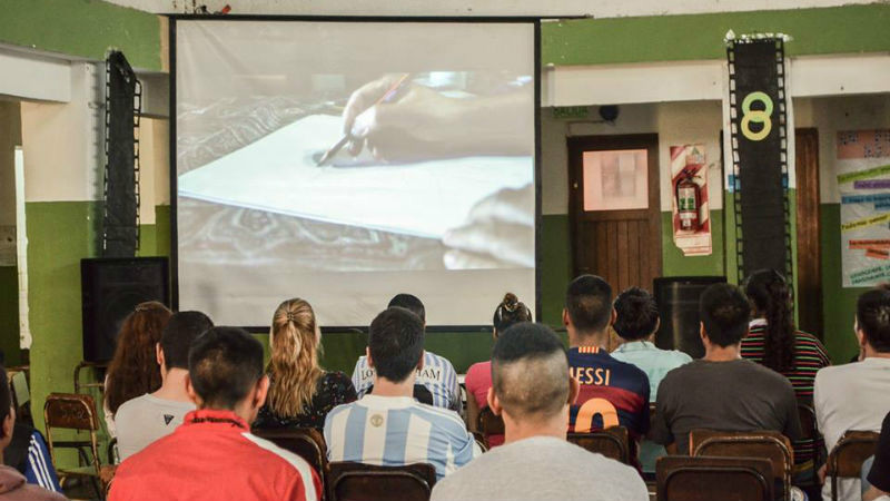 Jamás imaginamos que uno de los primero lugares que visitaría esta película nicoleña sería la Escuela Secundaria que está ubicada en el seno de la Unidad Penal de nuestra ciudad. El patio de la misma, transformada en cine, fue el escenario propicio para que el Arte ganara este espacio y cada uno de nosotros, alumnos y profesores,fuéramos espectadores de un film de calidad mayúscula que fue atrapándonos hasta ganarnos por completo.