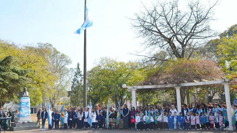 La cita tuvo lugar en la plaza que lleva su nombre y participaron del mismo autoridades de educación, abanderados y escoltas de las distintas escuelas de todos los niveles y autoridades municipales.