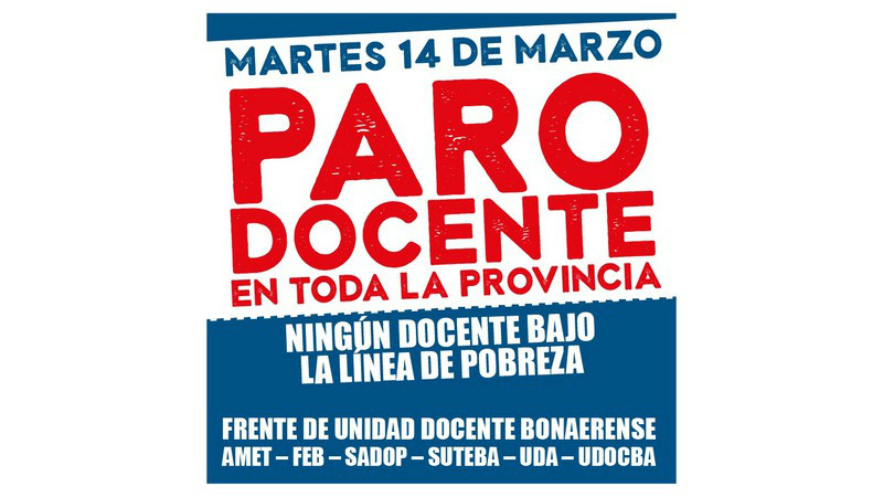 Los gremios docentes de la provincia de Buenos Aires anunciaron que ante la falta de convocatoria del gobierno de María Eugenia Vidal a una nueva mesa de diálogo en el marco de la discusión paritaria darán continuidad al paro.