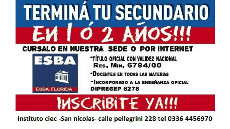 El Instituto CIEC informa que está abierta la inscripción al Bachillerato Acelerado para Jóvenes y Adultos.