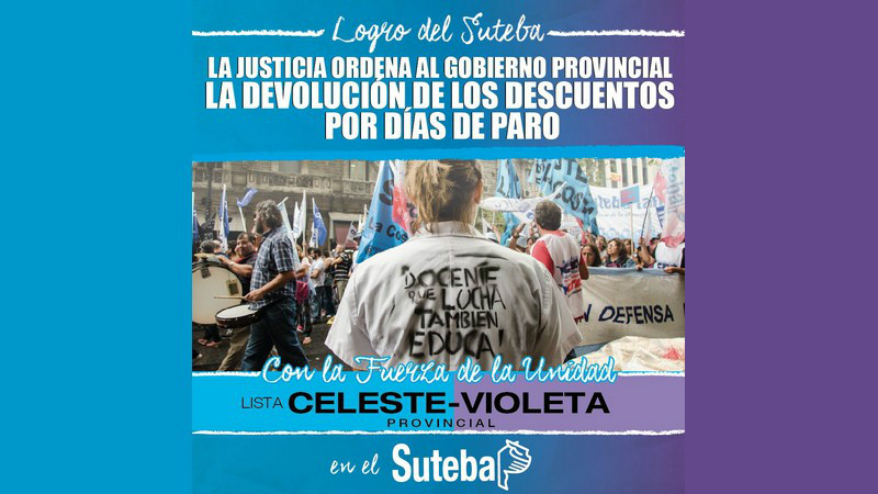 Las elecciones en el Sindicato Unificado de Trabajadores de la Educación de la provincia de Buenos Aires SUTEBA se realizarán este miércoles. Con la Lista Celeste Violeta se garantiza la continuidad de la construcción colectiva.
