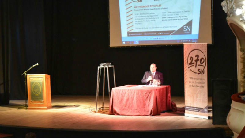 El jueves 12 de abril se realizó el encuentro de historia “San Nicolás, 270 años de la organización” de la que participaron alumnos de escuelas secundarias y público en general. El Dr. Ricardo Eseverri estuvo a cargo de la disertación que recorrió los hechos más importantes de la historia de nuestra ciudad con el objetivo de transmitirles a los más chicos la historia de la ciudad, para que conozcan sus orígenes y proceso de crecimiento, y al mismo tiempo fortalezcan el sentimiento de pertenencia a la misma.