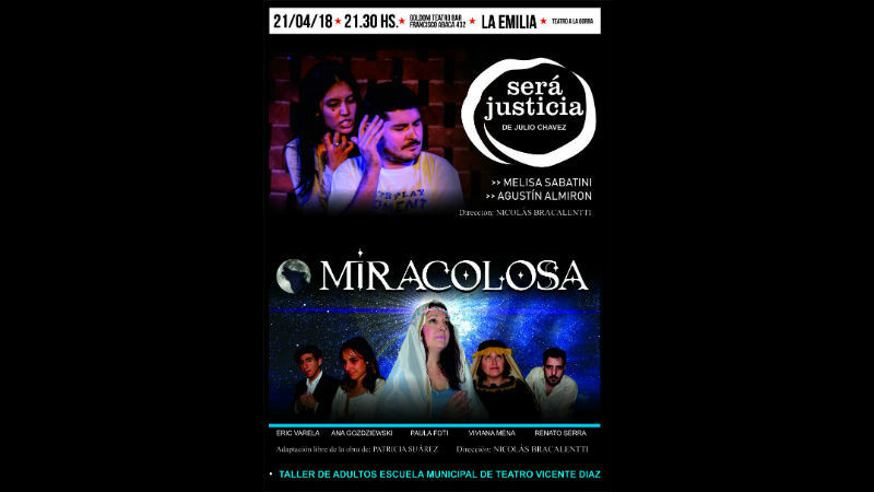Bajo la dirección de Nicolás Bracalentti se pondrán en escena: “Será justicia” de Julio Chávez y “Miracolosa” de Patricia Suárez.