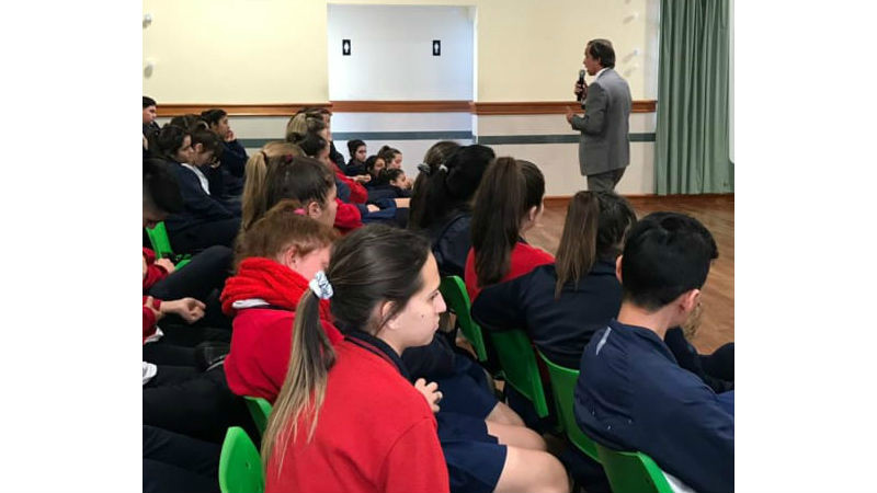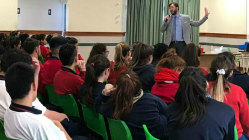 La exposición estuvo a cargo del Fiscal Jorge Leveratto y del Agente Judicial además de docente, Nicolás Lemme. La charla fue seguida con mucha atención por los adolescentes a los que se les proyectaron videos vinculados con la temática.