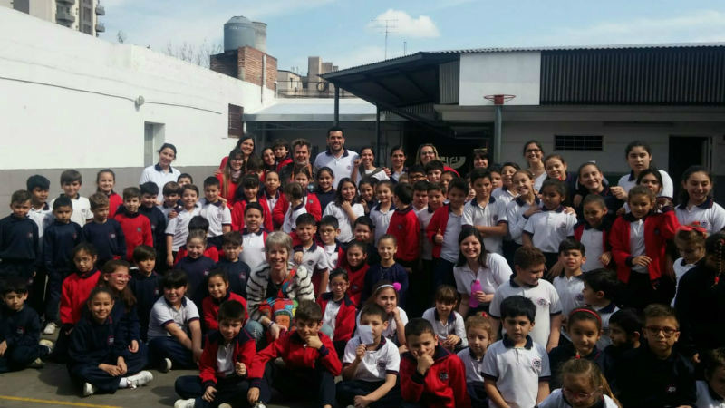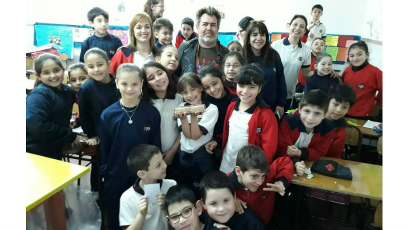 También firmó autógrafos, se sacó fotos con toda la comunidad educativa y les obsequió una de sus obra.