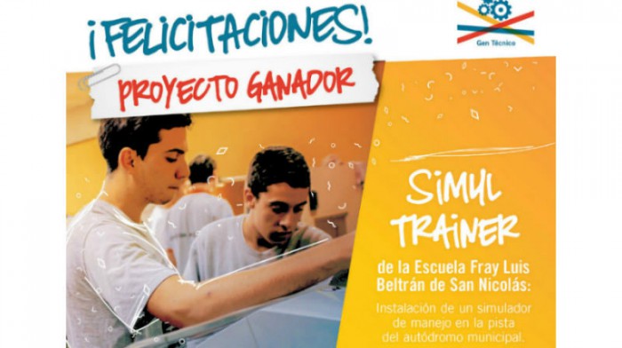 El 14 de noviembre a las 10.00 hs en el Club de Emprendendores, Av. Morteo 101, se entregará el cheque por $50.000 al equipo Simul Trainer, del Instituto Fray Luis Beltrán de San Nicolás.