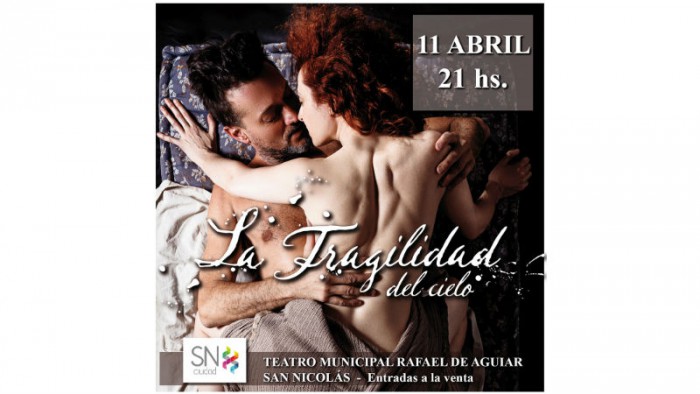 La Fragilidad del Cielo, destacada por la crítica por la riqueza de su textualidad, la cuidada puesta en escena con una iluminación impecable, y actuaciones de alta calidad que encarnan con una verdad aplastante este drama erótico de época, se presentará el jueves 11 de Abril a las 21hs, en el Teatro Municial Rafael de Aguiar de San Nicolás.