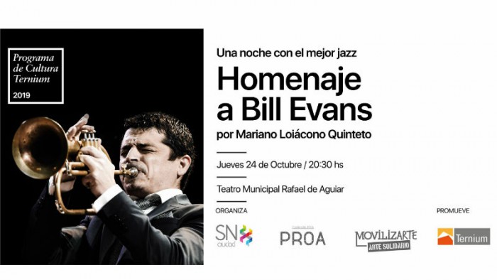 El próximo jueves 24 de octubre, a las 20.30 hs. el Teatro Municipal tendrá al jazz como protagonista; el Ciclo Cultura Ternium, promovido por Terniun Argentina, con la organización de la Fundación PROA y la Subsecretaria de cultura de la Municipalidad de San Nicolás, tendrá el placer de presentar al trompetista Mariano Loiácono quien, junto a su grupo, serán los encargados de homenajear la carrera del gran músico Bill Evans, a cuarenta años de su paso por el Teatro Municipal de nuestra ciudad.