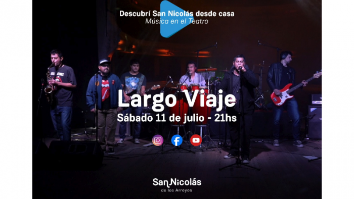 El sábado 11 de julio a las 21 hs. la banda de rock “Largo viaje” estrenará online su nuevo show grabado en el Teatro Municipal en el marco del ciclo cultural que se transmite por las redes sociales de Descubrí San Nicolás.