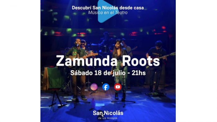 Todos los nicoleños podrán apreciar la música de Zamunda roots desde sus hogares en forma online por las distintas redes sociales de Descubrí San Nicolás: web, Facebook, Instagram y Youtube.