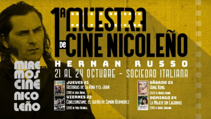 Un Ojo Rojo Producciones y Ágora Espacio Cultural Independiente invitan a la 1° Muestra de Cine Nicoleño "Hernán Russo", a desarrollarse en la Sociedad Italiana, Italia 23, entre los días 21 y 24 de octubre.