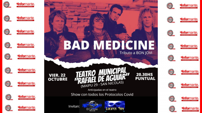 El viernes 22 de octubre, a las 20:30, en el Teatro Municipal, se llevará a cabo un tributo a Bon Jovi, con la presentación de la banda Bad medicine. Es una de las mejores bandas tributo del país, con gran calidad sonora y ofreciendo un show con el mismo carisma, energía y emoción que los verdaderos Bon Jovi, repasando clásicos de la reconocida banda norteamericana, en especial todo lo que tiene que ver con su gran disco Crossroads.