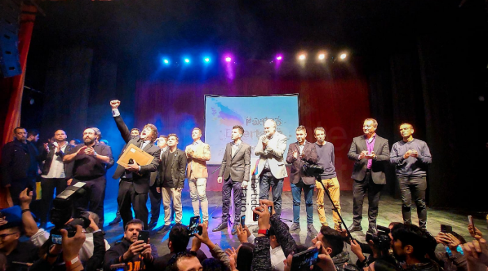 El economista, fue galardonado con la presidencia Honorífica del partido y para el acto de entrega subieron al escenario: las autoridades de la junta promotora partidaria y los referentes seccionales de la provincia.