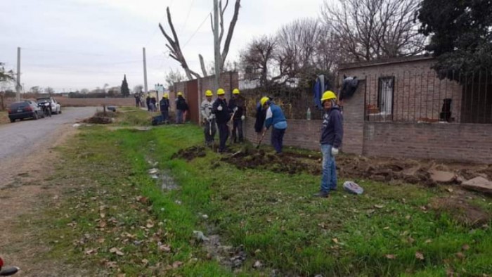 Trabajadores del Movimiento Evita comenzaron la primera etapa de la obra de conexión e instalación intradomiciliaria de electricidad, red peatonal y arbolado público, en el barrio de 12 de Marzo.