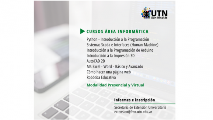 Se puede consultar la oferta completa y programas en: https://bit.ly/3xw2Tzu. Más información, costos e inscripción: extension@frsn.utn.edu.ar.