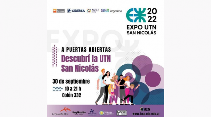 La Facultad Regional San Nicolás, en el marco de las acciones relacionadas con la difusión de su oferta educativa y la interrelación con el medio tanto social como productivo de la región, este año llevará adelante la Expo UTN San Nicolás. Esta actividad, destinada a instituciones educativas del nivel primario, secundario y de educación superior, como a la comunidad en general, está prevista para el viernes 30 de septiembre de 9:30 a 21:00, en Colón 332.