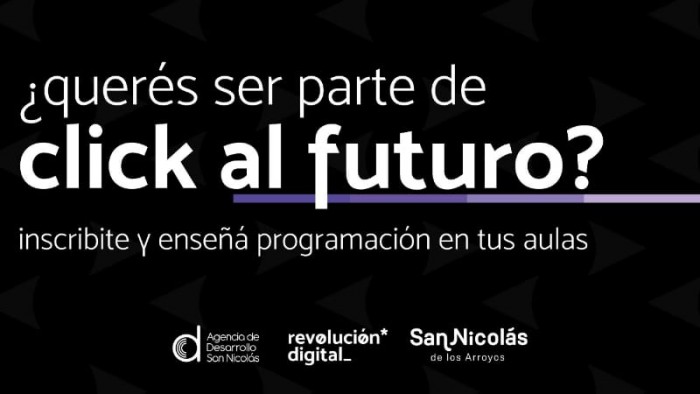 La Municipalidad de San Nicolás y la Agencia de Desarrollo Económico abrieron la inscripción para los programas “Click al futuro” y “Puente al trabajo”. Estos dos programas son parte de Revolución Digital y los interesados tendrán tiempo de inscribirse hasta el 29 de enero.