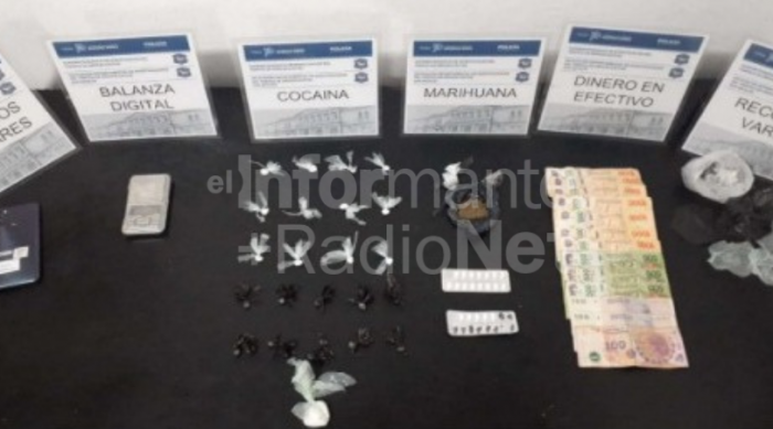 En el procedimiento se secuestraron 15,6 gramos de cocaína, fraccionados en 23 envoltorios y listos para la venta. Además, 16 gramos de marihuana fraccionados y listo para la venta, una balanza digital de precisión, recortes de nylon, materiales de estiramiento, dinero en efectivo y un equipo de telefonía celular, material estupefaciente y elementos que los nombrados detentaban con fines de la comercialización de estupefacientes.