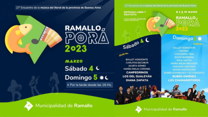 Los días sábado 4 y domingo 5 de marzo se llevará a cabo el Ramallo Porá 2023. Será el 27° encuentro de la música del litoral de la provincia de Buenos Aires.