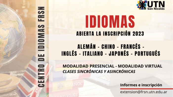 La UTN Facultad Regional San Nicolás te ofrece amplia capacitación en idiomas: ALEMÁN, CHINO, FRANCÉS, INGLÉS, ITALIANO, JAPONÉS, PORTUGUÉS.