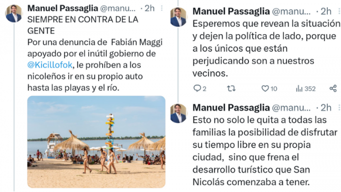 Por su parte el Intendente Manuel Passaglia se expresó en sus redes sociales:" Siempre en contra de la gente. Por una denuncia de Fabián Maggi, apoyado por el inútil gobierno de Axel Kicillof
