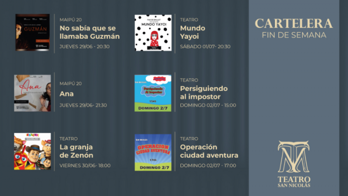 Este fin de semana, el Teatro San Nicolás ofrecerá una gran variedad de obras infantiles, teatrales y de comedia.