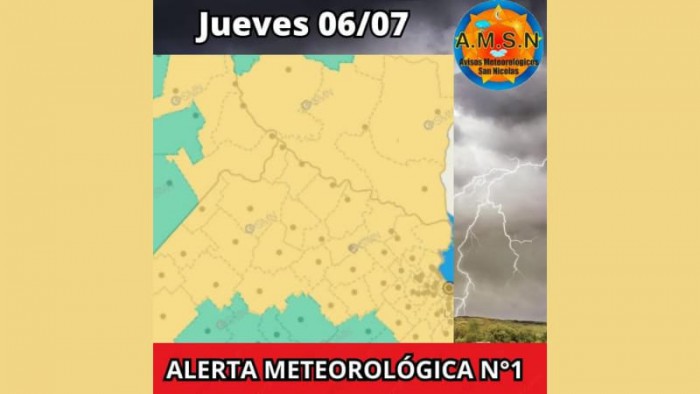 Avisos Meteorológicos SN informa sobre un alerta sobre posibles tormentas fuertes para la noche de este miércoles y madrugada del jueves en San Nicolás, Ramallo, Pergamino y Villa Constitución.