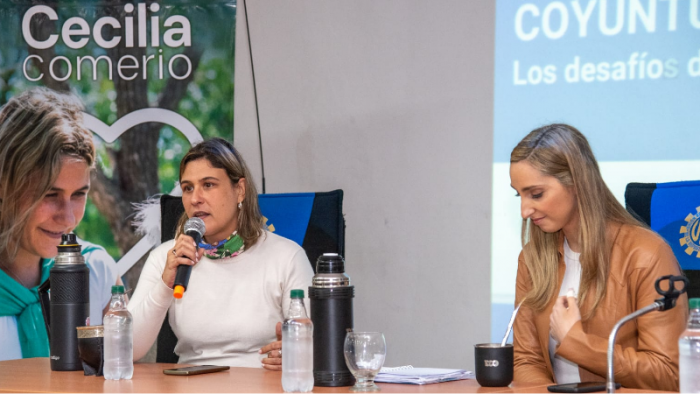 La directora del Banco Nación, Julia Strada, visitó nuestra ciudad, donde fue recibida por la presidenta del Consorcio de Gestión del Puerto San Nicolás y pre candidata a intendenta, Cecilia Comerio, con quien dio una charla sobre los desafíos de la economía argentina, que se realizó durante la tarde del miércoles en el Instituto Tecnológico Rafael de Aguiar (ITEC).