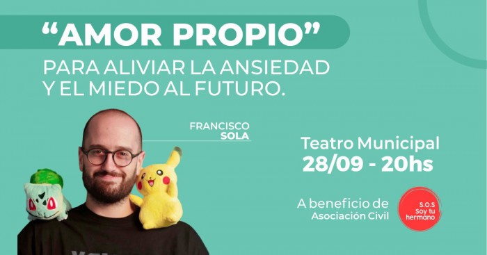 El jueves 28 de septiembre, a las 20.00 horas, se presenta en el Teatro San Nicolás Francisco Sola con "4 pactos para el amor propio".