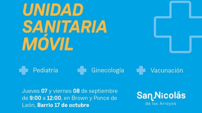 La Municipalidad de San Nicolás informa que, durante el jueves 7 y viernes 8 de septiembre de 9:00 a 12:00, el tráiler de Salud estará ubicado en Brown y Ponce de León de barrio 17 de octubre. Los servicios que se brindarán son el de vacunación durante ambas jornadas, el día jueves se sumará la atención pediátrica y el viernes ginecología.