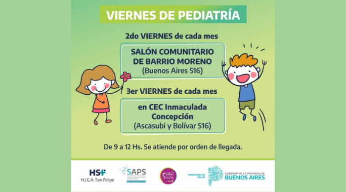 A través del Servicio de Área Programática y Redes (SAPS), los segundo y tercer viernes de cada mes el Hospital San Felipe reforzará la atención en pediatría fuera del nosocomio.