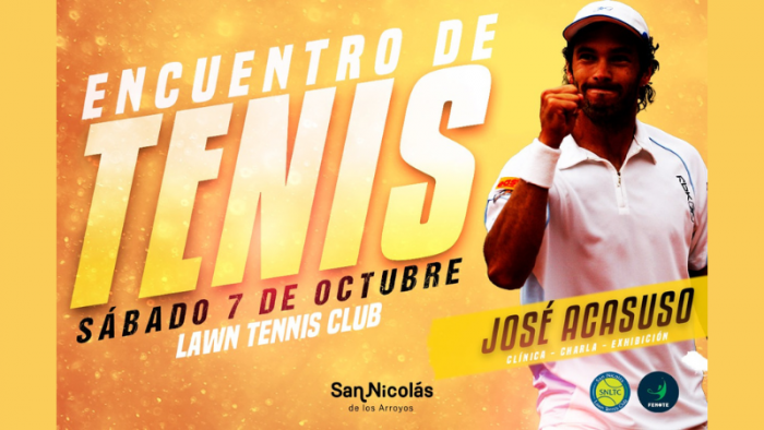 Este sábado 7 de octubre los nicoleños podrán participar de un encuentro de tenis que contará con la presencia del reconocido tenista José Acasuso. Será en el Lawn Tenis (Av. Viale y Sarmiento) a partir de las 10:00.