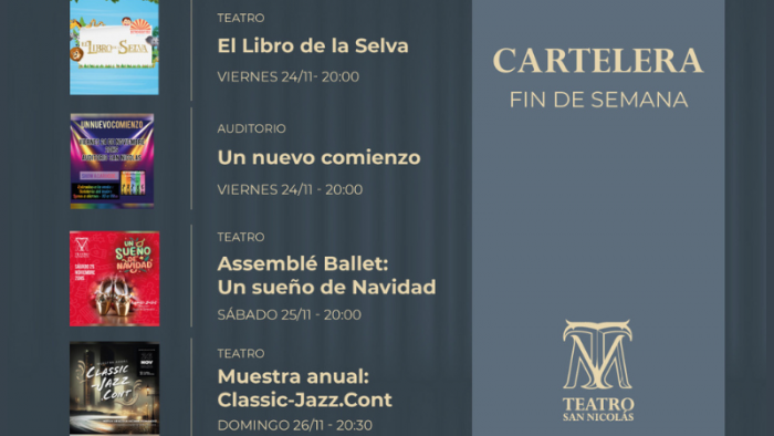 Como cada fin de semana, la cartelera del Teatro San Nicolás se renueva y, en esta oportunidad, presenta espectáculos que corresponden a las muestras de fin de año de distintas academias e instituciones de la ciudad.